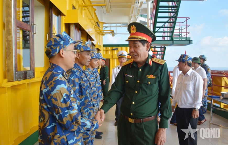 | Thượng tướng Nguyễn Văn Gấu thăm cán bộ, chiến sĩ Nhà giàn DK1/11. |