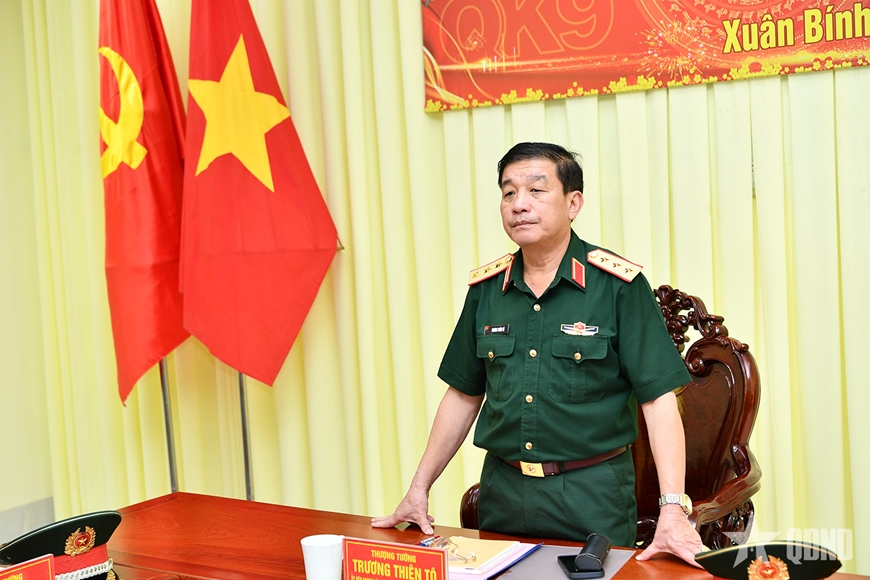 Thượng tướng Trương Thiên Tô cũng lưu ý Đảng ủy, chỉ huy các đơn vị tiếp tục tăng cường lãnh đạo chăm lo tốt nhất đời sống vật chất, tinh thần cho cán bộ, chiến sĩ nhất là lực lượng làm nhiệm vụ canh trực; thực hiện nghiêm nhiệm vụ sẵn sàng chiến đấu trong dịp Tết Nguyên đán Bính Ngọ 2026. Quan tâm chăm lo thực hiện tốt chính sách hậu phương quân đội; phối hợp với chính quyền, địa phương làm tốt công tác dân vận, giúp đỡ cho các gia đình chính sách và hộ nghèo trên địa bàn đóng quân.