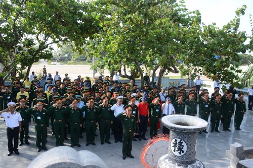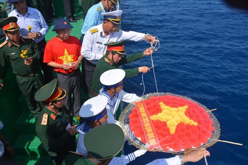 Đoàn công tác của TCCT thực hiện nghi lễ tưởng niệm các chiến sĩ đã hy sinh tại vùng biển Gạc Ma. Ảnh: Xuân Đức