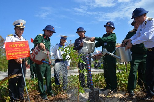 Các đại biểu trồng cây Vối trên Đảo Phan Vinh. Ảnh: Văn Thắng