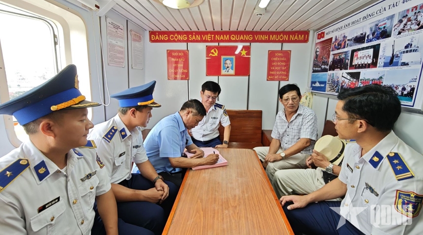 Tham gia đoàn có Thượng tướng, PGS, TS, Anh hùng LLVT nhân dân Võ Tiến Trung, nguyên Ủy viên Trung ương Đảng, nguyên Giám đốc Học viện Quốc phòng. Đại tá Lê Huy, Chính ủy Vùng Cảnh sát biển 2; Đại tá Nguyễn Minh Khánh, Phó tư lệnh kiêm Tham mưu trưởng cùng cán bộ, chiến sĩ Vùng Cảnh sát biển 2 đón tiếp và giao lưu với đoàn.