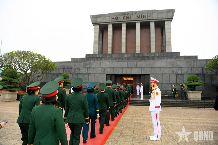 Tham gia buổi lễ có đại biểu lãnh đạo, chỉ huy một số cơ quan chức năng Bộ Quốc phòng, Tổng cục Chính trị, lãnh đạo Bộ tư lệnh Lăng Chủ tịch Hồ Chí Minh cùng các đại biểu phụ nữ ưu tú đại diện cho phụ nữ toàn quân dự Đại hội đại biểu Phụ nữ Quân đội lần thứ VIII (2025-2030).