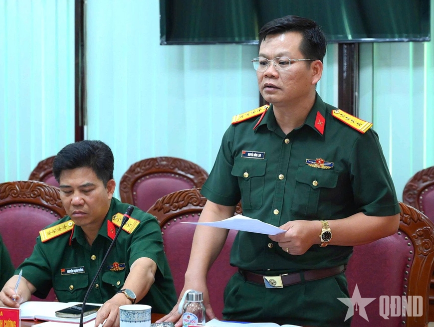| Thượng tá Đào Hùng Mạnh, Phó chánh Văn phòng Binh đoàn phát biểu. |