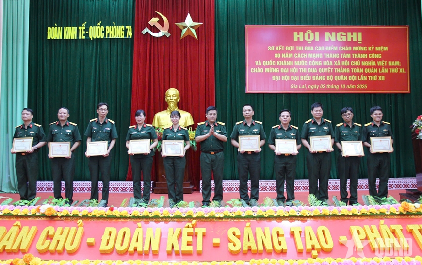 Nhân dịp này, Đoàn Kinh tế - Quốc phòng 74 trao giấy khen tặng 3 tập thể, 149 cá nhân và thưởng tiền cho 94 đồng chí hợp đồng thời vụ, lao động nhận khoán có thành tích xuất sắc, tiêu biểu trong đợt thi đua.