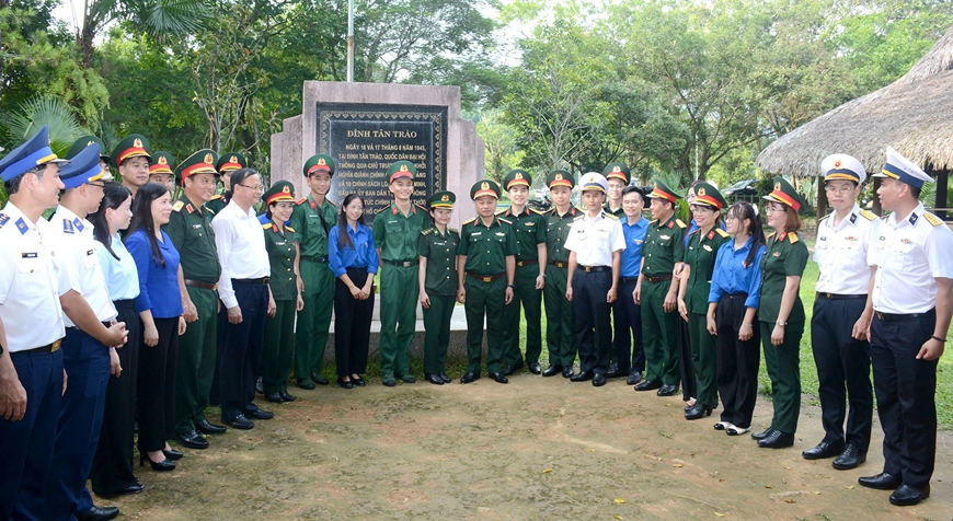 | Lãnh đạo Tổng cục Chính trị cùng các đại biểu và tuổi trẻ Quân đội thực hiện hoạt động về nguồn tại Khu di tích Quốc gia đặc biệt Tân Trào (tỉnh Tuyên Quang), tháng 8-2025. Ảnh: CHIẾN VĂN |