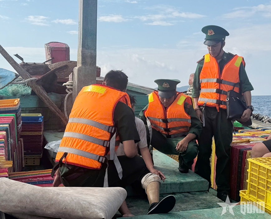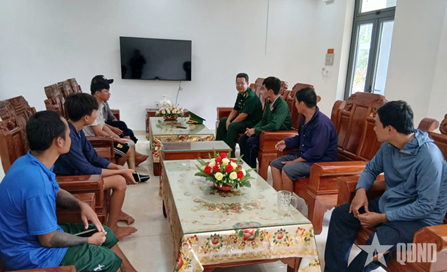 | Cán bộ Đồn Biên phòng Côn Đảo thăm hỏi, động viên các nạn nhân tại đơn vị. |