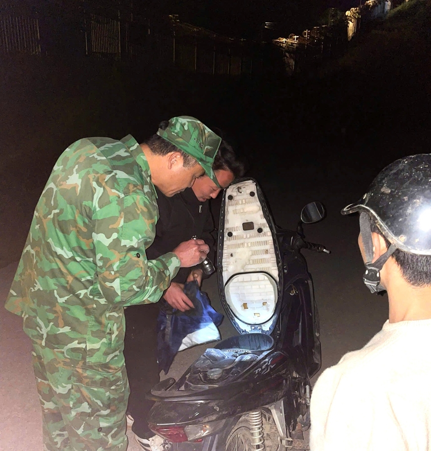 Cán bộ, chiến sĩ Đồn Biên phòng Cửa khẩu Săm Pun tuần tra, kiểm soát ban đêm trên địa bàn xã biên giới Sơn Vĩ, kịp thời nắm tình hình, bảo đảm an ninh trật tự trước ngày bầu cử.