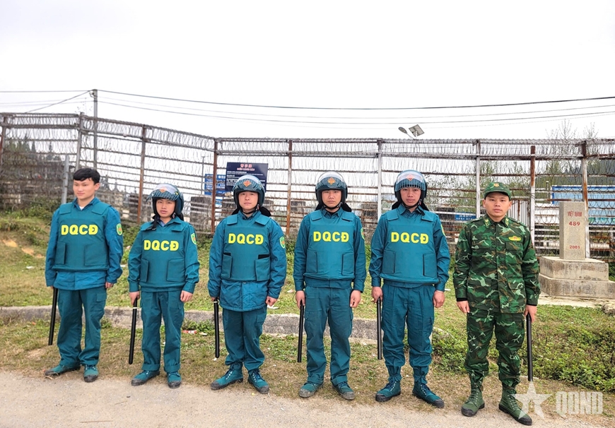 | Đồn Biên phòng Cửa khẩu Săm Pun tăng cường phối hợp với lực lượng dân quân cơ động tổ chức tuần tra, bảo vệ khu vực mốc biên giới. |