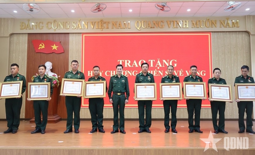 | Đại tá Hoàng Văn Mẫn trao Huy chương Chiến sĩ vẻ vang hạng Nhất, Nhì, Ba của Chủ tịch nước tặng các cá nhân thuộc Đồn Biên phòng Hải Vân. |