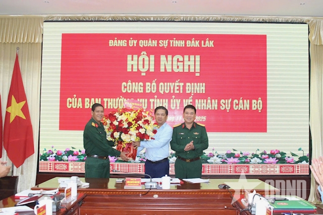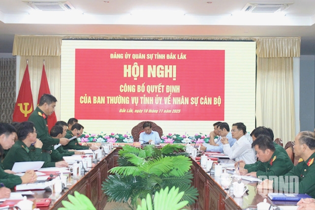 Tại hội nghị, Đại tá Đinh Văn Hưng, Tỉnh ủy viên, Phó bí thư Thường trực Đảng ủy Quân sự tỉnh, Chính ủy Bộ CHQS tỉnh Đắk Lắk công bố Quyết định số 15-QĐ/TU, ngày 29-10-2025 của Ban Thường vụ Tỉnh ủy Đắk Lắk về việc chỉ định đồng chí Lương Nguyễn Minh Triết, Ủy viên dự khuyết Trung ương Đảng, Bí thư Tỉnh ủy Đắk Lắk tham gia Ban Chấp hành, Ban Thường vụ và giữ chức Bí thư Đảng ủy Quân sự tỉnh Đắk Lắk, nhiệm kỳ 2025-2030.