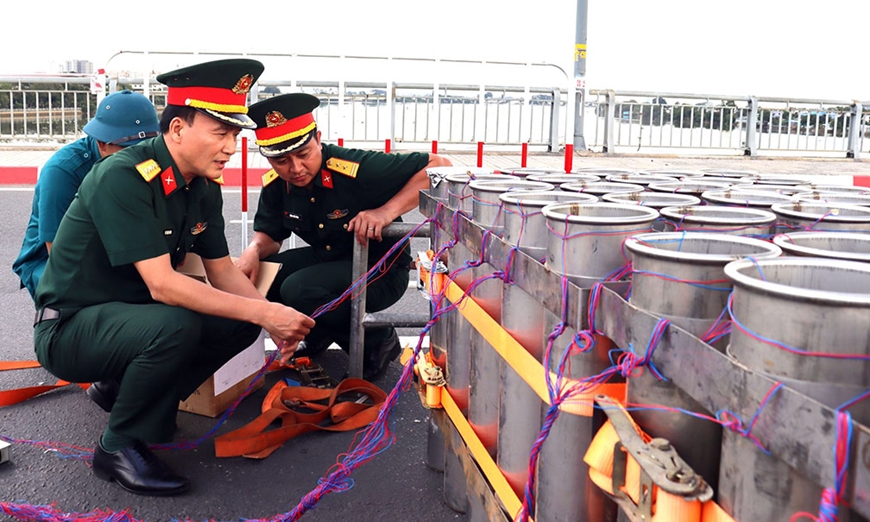 Theo báo cáo, cán bộ, chiến sĩ tại các điểm diễn ra sự kiện này đã đấu nối, thực hiện các thao tác bảo đảm an toàn, sẵn sàng chờ giờ khai hỏa. Bộ CHQS tỉnh phân công các đồng chí chỉ huy trực tại các điểm bắn pháo hoa, kiểm tra, nắm chắc tình hình và bảo đảm an toàn tuyệt đối.