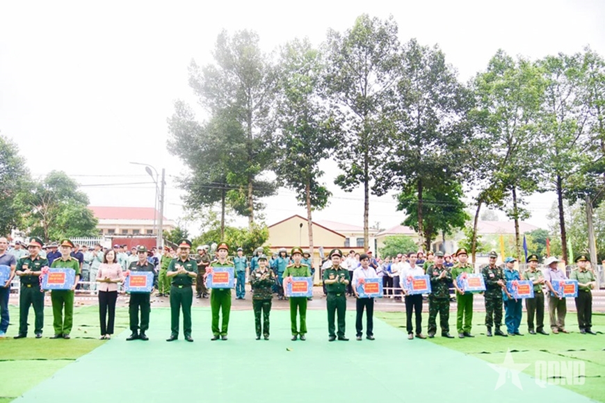 | Tặng quà các lực lượng tham gia diễn tập. |