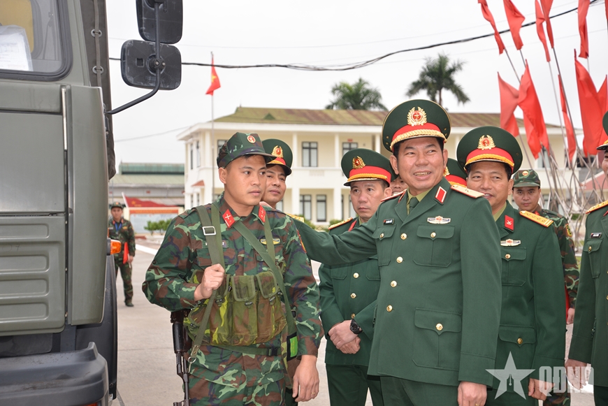| Thiếu tướng Tô Thành Quyết kiểm tra lực lượng, phương tiện sẵn sàng chiến đấu tại Lữ đoàn 653. Ảnh: KIM NGỌC |