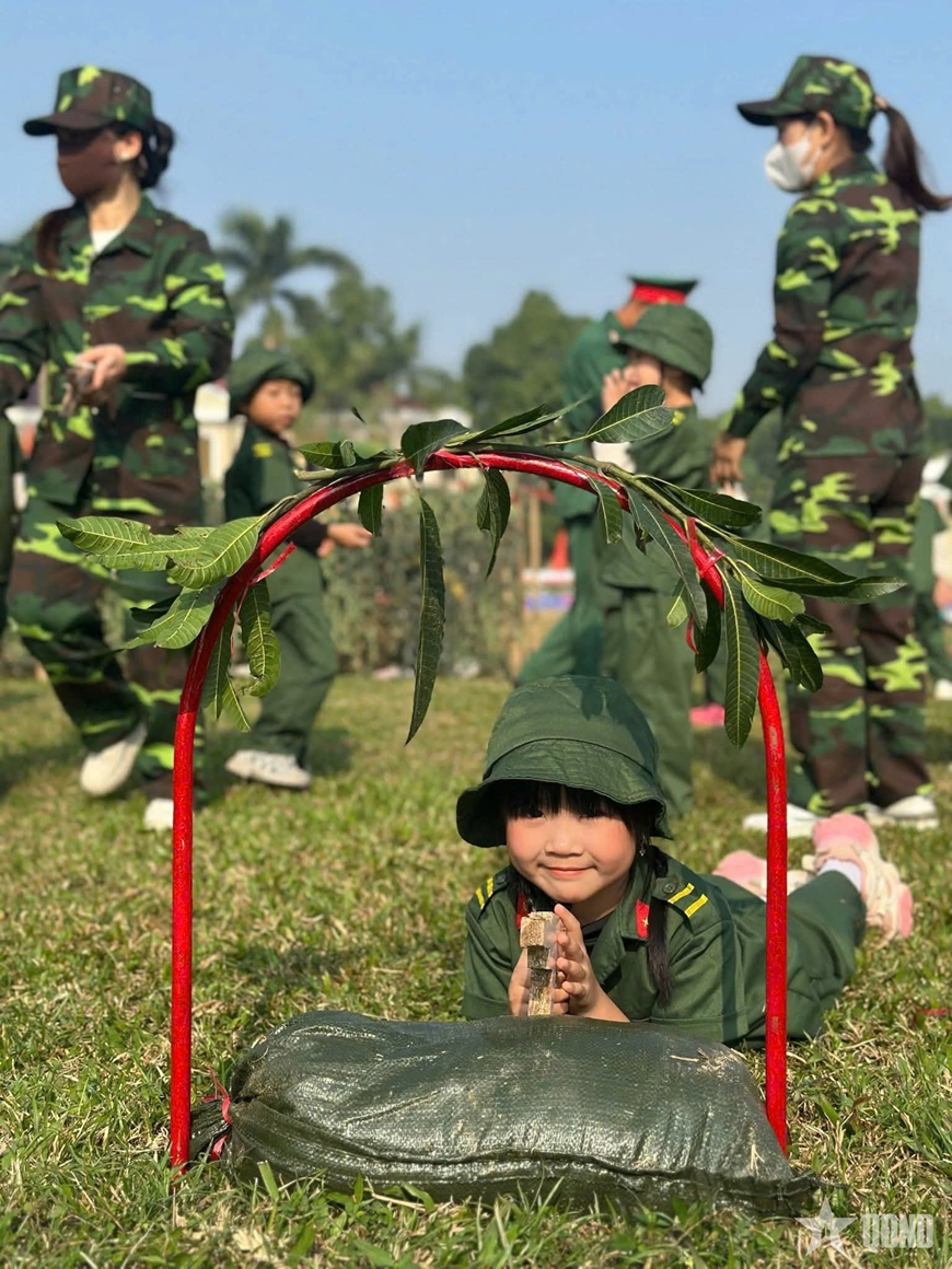Đặc biệt, các em hào hứng khi lần đầu được tìm hiểu trang bị, khí tài đặc chủng của Bộ đội Hóa học, trực tiếp đeo mặt nạ phòng độc, mặc trang phục chuyên ngành, tham gia các hoạt động đồng diễn, giao lưu văn nghệ mang đậm sắc màu quân đội, tạo nên bầu không khí sôi nổi, phấn khởi, đầy ắp tiếng cười.