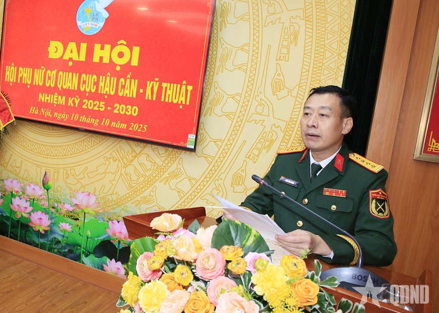 Chiều 10-10, Hội Phụ nữ cơ quan Cục Hậu cần - Kỹ thuật (Tổng cục Hậu cần - Kỹ thuật) tổ chức Đại hội nhiệm kỳ 2025-2030. Đại tá Trần Văn Khoát, Phó cục trưởng Cục Hậu cần - Kỹ thuật dự, chỉ đạo đại hội.