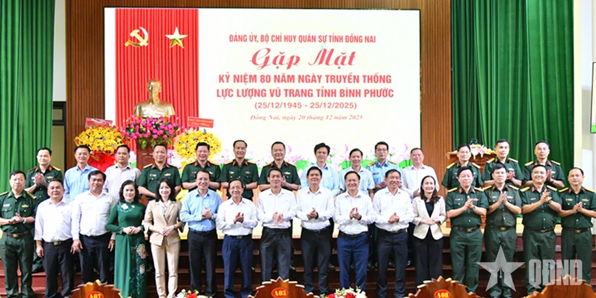 Tại buổi gặp mặt, các đại biểu đã cùng nhau ôn lại lịch sử truyền thống 80 năm xây dựng, chiến đấu và trưởng thành của lực lượng vũ trang tỉnh Bình Phước.