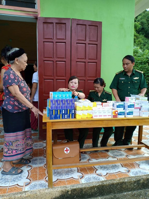 Quân y BĐBP Nghệ An khám bệnh, cấp thuốc cho nhân dân bản Bà. |