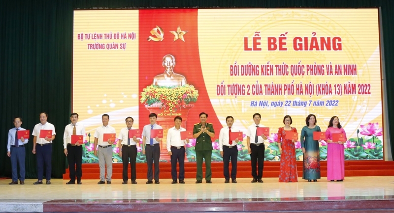 Chiều 22-7, Trường Quân sự Bộ tư lệnh Thủ đô Hà Nội đã tổ chức lễ bế giảng lớp bồi dưỡng kiến thức quốc phòng - an ninh cho cán bộ đối tượng 2 của các sở, ban, ngành thuộc thành phố Hà Nội.