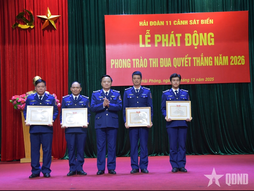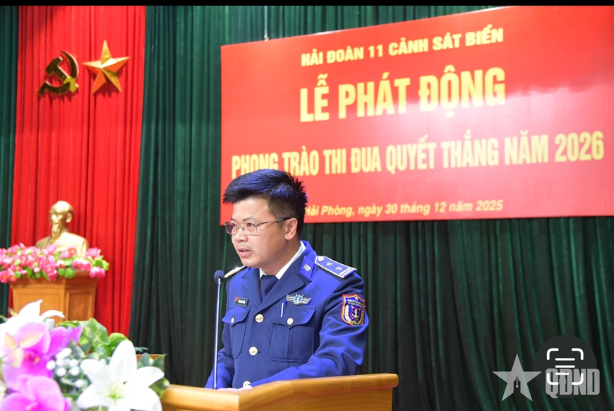 Phát biểu tại buổi lễ Trung tá Tống Duy Thuần, Ủy viên Ban thường vụ, Phó chính ủy Hải đoàn 11 nhấn mạnh: Phong trào Thi đua Quyết thắng năm 2026 có ý nghĩa quan trọng, là động lực trực tiếp cổ vũ, động viên cán bộ, chiến sĩ phát huy tinh thần tự lực, tự cường, đoàn kết, kỷ cương, chủ động, sáng tạo trong thực hiện nhiệm vụ; góp phần xây dựng Hải đoàn 11 vững mạnh toàn diện, “mẫu mực, tiêu biểu”, hoàn thành tốt và xuất sắc các nhiệm vụ được giao.