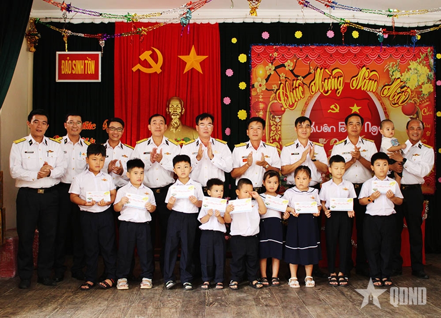 Tại những nơi đến, Đoàn công tác đã ân cần thăm hỏi, động viên, chúc Tết, tặng quà quân và dân trên đảo; mừng tuổi các cháu học sinh.