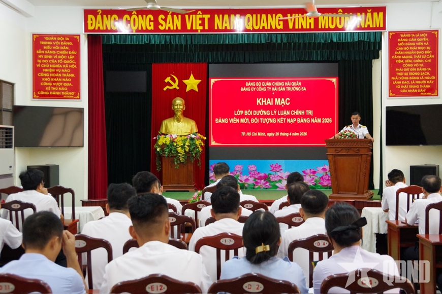 Sáng 20-4, Hải đoàn 129 (Quân chủng Hải quân) tổ chức khai mạc lớp bồi dưỡng lý luận chính trị đảng viên mới, đối tượng kết nạp Đảng năm 2026.