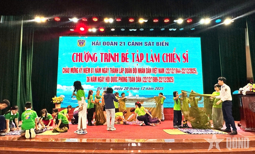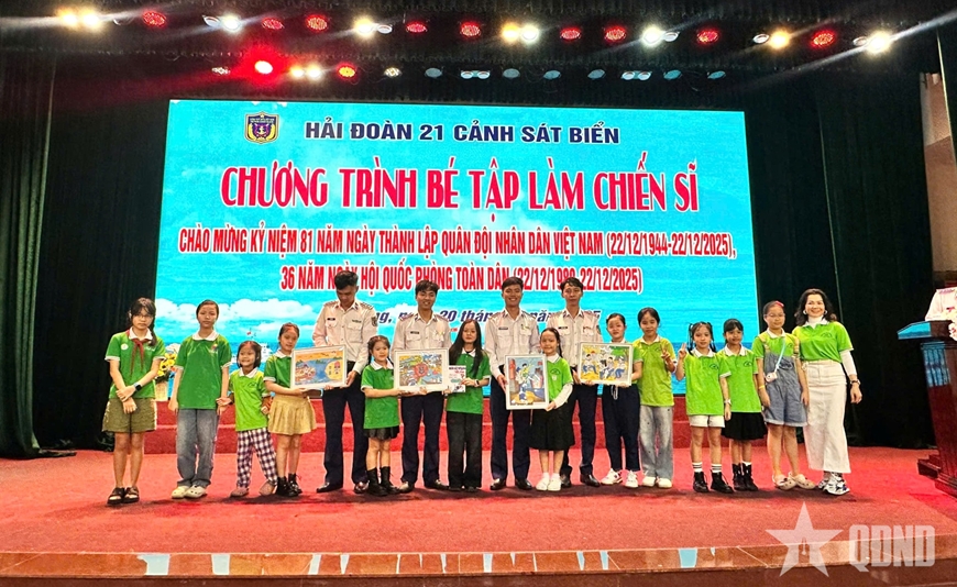Ngày 20-12, Hải đoàn 21 (Bộ tư lệnh Vùng Cảnh sát biển 2) đã tổ chức chương trình “Bé tập làm chiến sĩ”, đón tiếp hơn 100 học sinh và thầy, cô giáo Trường Tiểu học Kim Đồng, Phường Tam Kỳ, TP Đà Nẵng đến thăm, giao lưu và tham quan tại đơn vị.