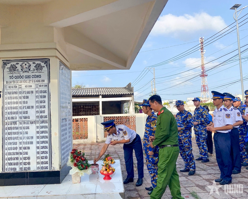 | Hải đoàn 42 cùng các đơn vị dâng hương tại Nhà bia ghi danh các anh hùng liệt sĩ tại xã Năm Căn. |