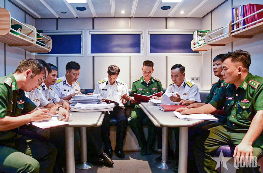Đoàn công tác kiểm tra thực tế trên tàu Hải đoàn Biên phòng 18.