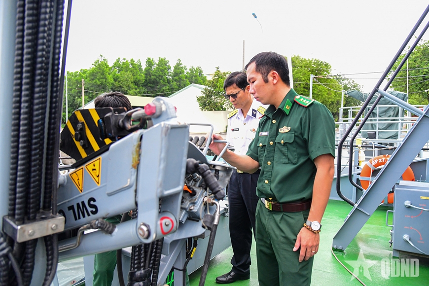 Đoàn công tác đã tiến hành kiểm tra tại nơi neo đậu tàu thuyền Hải đoàn Biên phòng 18. Nội dung kiểm tra tập trung vào việc chấp hành các quy định của Nhà nước và Bộ Quốc phòng trong công tác đăng kiểm tàu, xuồng quân sự đang khai thác sử dụng.