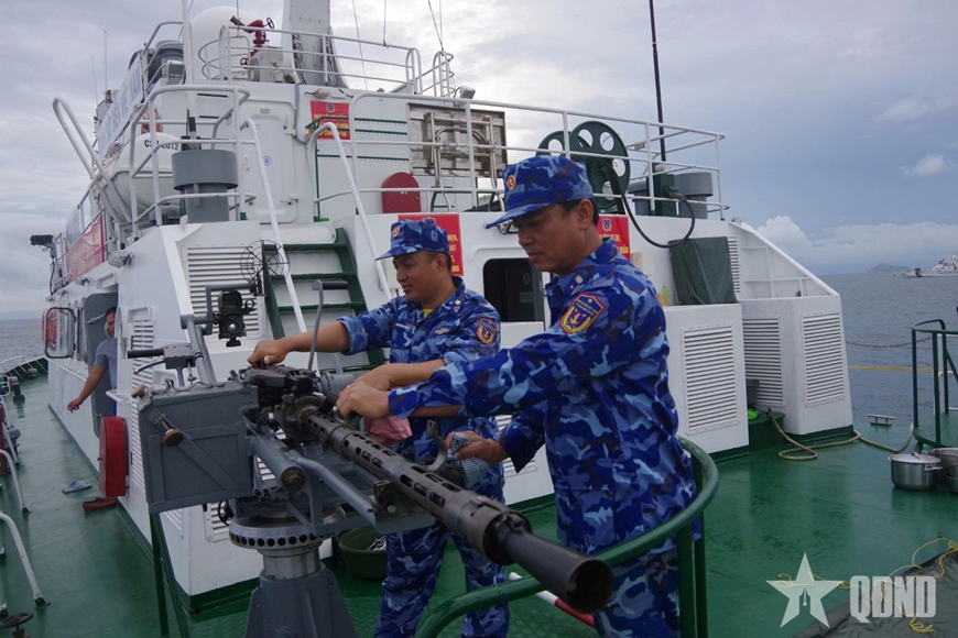 Cán bộ, chiến sĩ Hải đội 202 bảo quản vũ khí, trang bị tàu thuyền sẵn sàng thực hiện nhiệm vụ khi có lệnh.