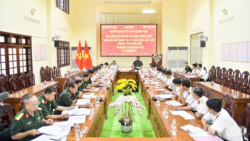 Sáng 13-11, tại Lữ đoàn 950 (Quân khu 9), diễn ra tọa đàm khoa học cấp Bộ Quốc phòng “Hoạt động của Hải đội Dân quân thường trực tham gia đấu tranh bảo vệ chủ quyền biển, đảo trong tình hình mới”.