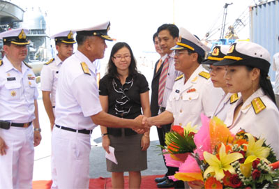 QĐND Online - Sáng 27–4, tàu H.T.M.S Taksin thuộc đơn vị huấn luyện Học viện Hải quân Hoàng gia Thái Lan đã cập cảng Tiên Sa (Đà Nẵng) bắt đầu chuyến thăm chính thức thành phố Đà Nẵng và một số đơn vị quân đội đóng quân trên địa bàn. Theo lịch trình, Đoàn dừng chân tại Đà Nẵng đến hết ngày 30-4. Được biết, Đoàn Hải quân Thái Lan do Thiếu tướng Kraisorn Chansuvanich, Phó chỉ huy Huấn luyện Hải quân Thái Lan dẫn đầu cùng Đại tá Samarn Khunthaphong, Thuyền trưởng tàu H.T.M.S Takin và 355 sỹ quan, thủy thủ, sinh viên huấn luyện tại Học viện.
