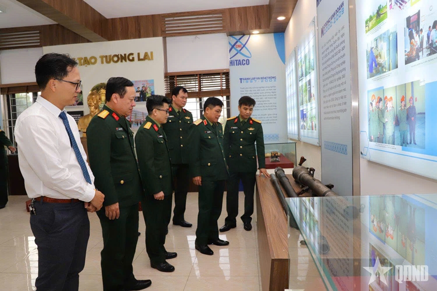 Trung tướng Trần Minh Đức, Chủ nhiệm Tổng cục Hậu cần-Kỹ thuật nghe giới thiệu về một số sản phẩm mà Công ty HiTACO cung cấp.