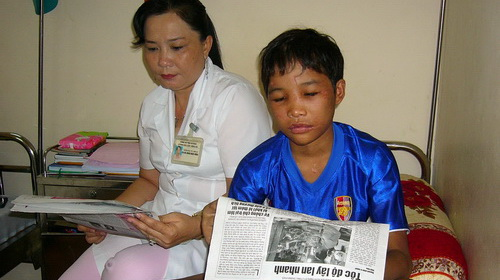 | Hào Anh lúc đang điều trị tại Bệnh xá công an tỉnh Cà Mau |