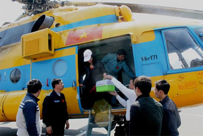 QĐND Online - Thực hiện lệnh của trên, 10 giờ sáng 25-2, Trung đoàn 916 (Sư đoàn 371) đã sử dụng 1 máy bay Mi-172 và 2 máy bay Mi-171 thực hiện nhiệm vụ bay cứu hộ đưa gần 30 cán bộ, bác sĩ, điều dưỡng cùng thiết bị y tế hiện đại của Bệnh viện Bạch Mai và Bệnh viện Việt Đức lên giúp đỡ tỉnh Lai Châu cứu chữa người bị nạn trong vụ sập cầu treo tại bản Chu Va 6, xã Sơn Bình, huyện Tam Đường, tỉnh Lai Châu.