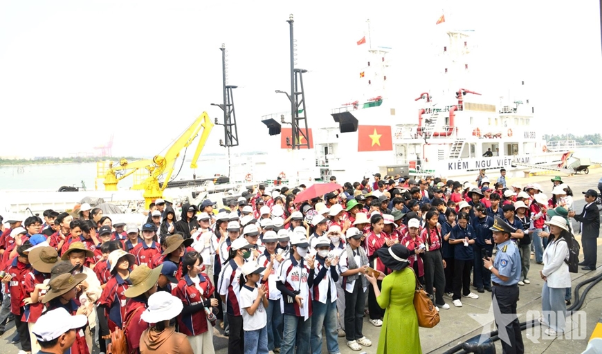 Ngày 11-4, tại xã Núi Thành, TP Đà Nẵng, Chi đội Kiểm ngư số 3 tổ chức đón tiếp gần 300 giáo viên, học sinh Trường Trung học cơ sở Nguyễn Du (thuộc xã Trà My, TP Đà Nẵng) đến tham quan, tìm hiểu truyền thống và giao lưu trải nghiệm tại Chi đội. Đồng chí Đỗ Đức Liêm, Phó chi đội trưởng Chi đội Kiểm ngư số 3 chủ trì đón tiếp đoàn.