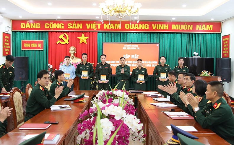 Trước tình hình đó, Đảng ủy, Ban giám đốc Học viện đã kịp thời chỉ đạo các cơ quan, đơn vị rà soát, nắm tình hình, thăm hỏi, động viên và tạo điều kiện cho quân nhân về phép để cùng gia đình khắc phục hậu quả. Đồng thời, thể hiện tinh thần “một nhà”, sẻ chia khó khăn với đồng đội, Học viện đã trích Quỹ “Vì người nghèo” trao hỗ trợ cho 27 đồng chí cán bộ, học viên, nhân viên với tổng kinh phí gần 60 triệu đồng.