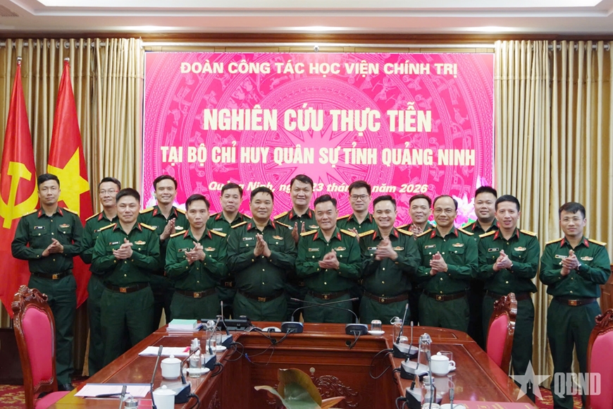 Chiều 23-3, đoàn công tác Học viện Chính trị do Đại tá Hoàng Mạnh Hưng, Chủ nhiệm Khoa công tác Đảng, công tác chính trị làm trưởng đoàn đã đến khảo sát thực tiễn công tác Đảng, công tác chính trị trong nhiệm vụ quân sự, quốc phòng địa phương tại Bộ CHQS tỉnh Quảng Ninh.