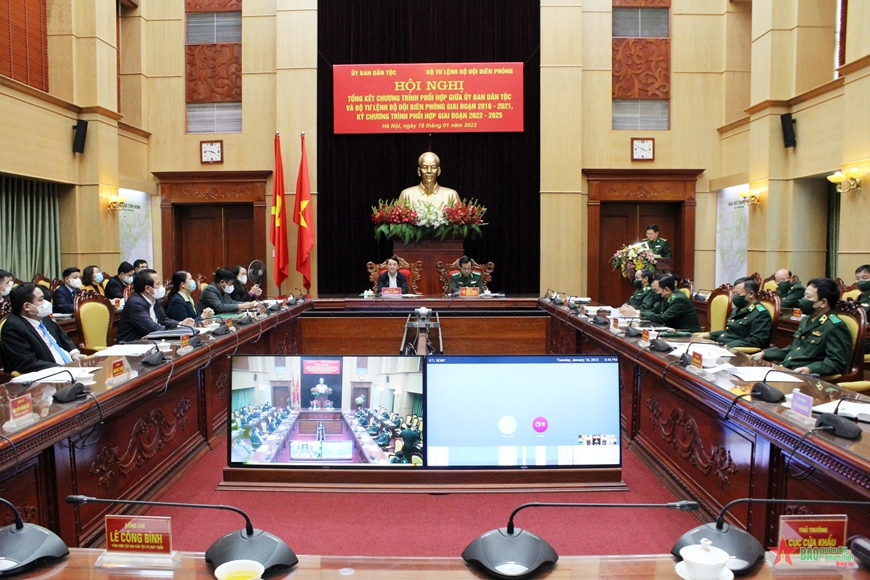 Chiều 18-1, Bộ tư lệnh Bộ đội Biên phòng (BĐBP) và Ủy ban Dân tộc (UBDT) tổ chức Hội nghị Tổng kết Chương trình phối hợp “Vận động đồng bào các dân tộc phát triển kinh tế - xã hội; tham gia bảo vệ chủ quyền an ninh biên giới quốc gia” giai đoạn 2016-2021 và ký chương trình phối hợp giai đoạn 2022-2025.