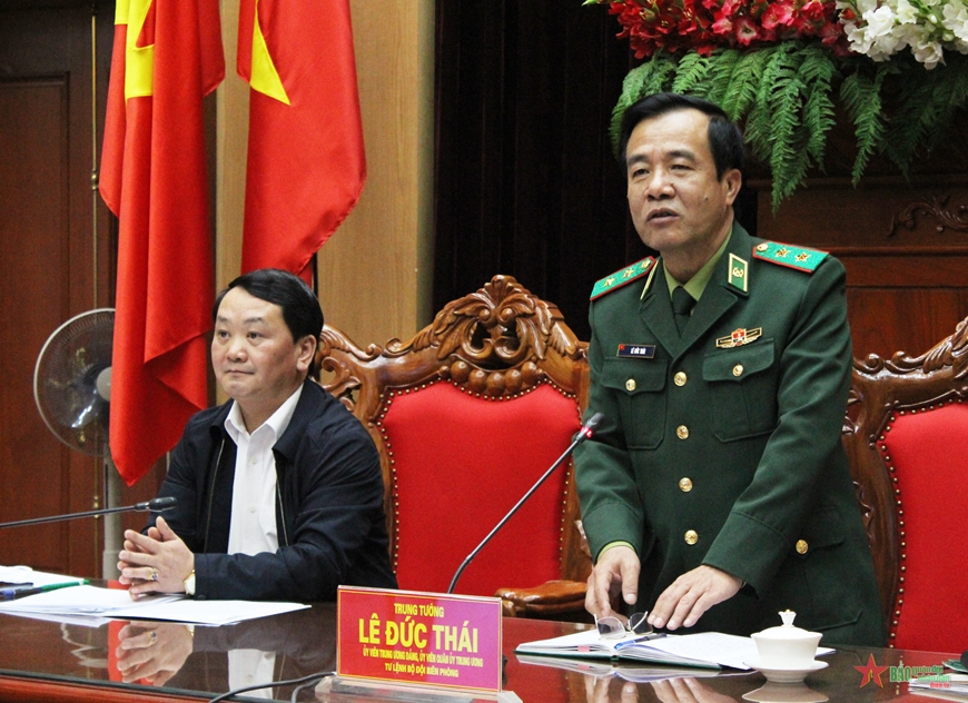 | Trung tướng Lê Đức Thái, Ủy viên Trung ương Đảng, Ủy viên Quân ủy Trung ương, Tư lệnh BĐBP định hướng triển khai chương trình phối hợp giữa Bộ tư lệnh BĐBP và UBDT trong giai đoạn 2022-2025. |