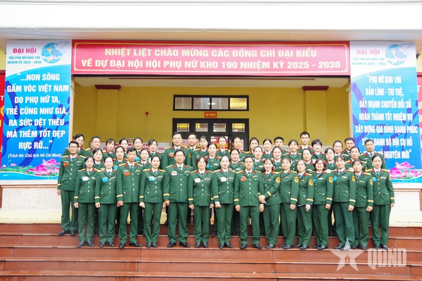 Các đại biểu chụp ảnh chung tại Đại hội Hội Phụ nữ Kho 190 nhiệm kỳ 2025-2030. |