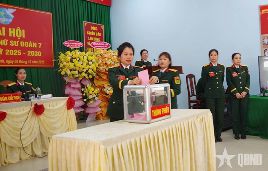 Các đại biểu thực hành bầu Ban chấp hành Hội Phụ nữ Sư đoàn 7 nhiệm kỳ 2025-2030. |