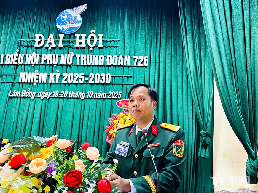 Phát biểu chỉ đạo đại hội, Thượng tá Đỗ Văn Tráng, Bí thư Đảng ủy, Chính ủy Trung đoàn 726 yêu cầu nhiệm kỳ 2025-2030, Hội Phụ nữ Trung đoàn 726 cần tiếp tục thực hiện tốt phong trào thi đua “Phụ nữ Quân đội trí tuệ - bản lĩnh, hoàn thành tốt nhiệm vụ, xây dựng gia đình hạnh phúc, xứng danh Bộ đội Cụ Hồ” thời kỳ mới, xây dựng người phụ nữ Quân đội “Trí tuệ, bản lĩnh, kỷ cương, nhân ái”.