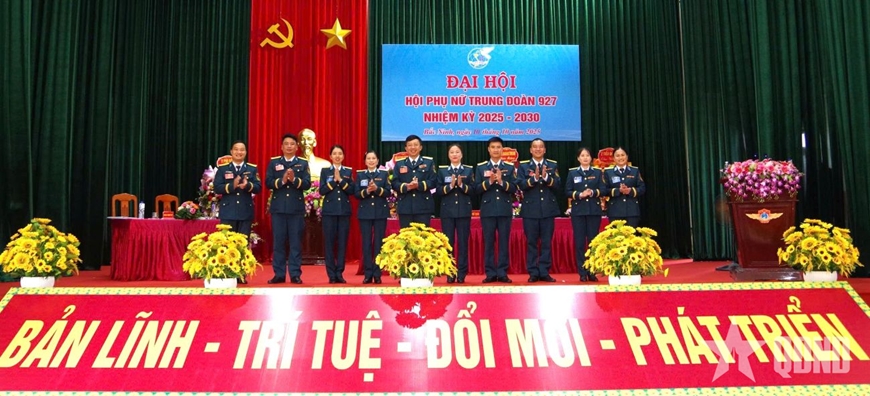 Đại biểu lãnh đạo, chỉ huy Trung đoàn 927 chúc mừng Ban Chấp hành Hội Phụ nữ Trung đoàn nhiệm kỳ 2025 - 2030.