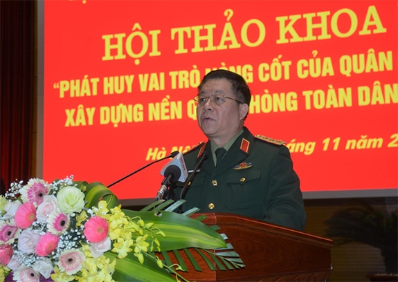Đại tướng Ngô Xuân Lịch phát biểu chỉ đạo hội thảo.