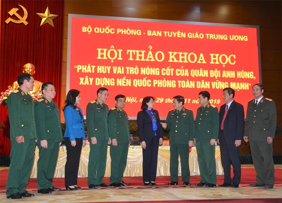 Dự hội thảo, về phía Nhà nước có đồng chí Đặng Thị Ngọc Thịnh, Ủy viên Trung ương Đảng, Phó chủ tịch nước Cộng hòa Xã hội Chủ nghĩa Việt Nam. Về phía Bộ Quốc phòng có các đồng chí: Đại tướng Ngô Xuân Lịch, Ủy viên Bộ Chính trị, Phó bí thư Quân ủy Trung ương, Bộ trưởng Bộ Quốc phòng; Đại tướng Phùng Quang Thanh, nguyên Ủy viên Bộ Chính trị, nguyên Phó bí thư Quân ủy Trung ương, nguyên Bộ trưởng Bộ Quốc phòng; Đại tướng Lương Cường, Bí thư Trung ương Đảng, Ủy viên Thường vụ Quân ủy Trung ương, Chủ nhiệm Tổng cục Chính trị; các đồng chí Ủy viên Trung ương Đảng, Thứ trưởng Bộ Quốc phòng: Thượng tướng Phan Văn Giang, Ủy viên Thường vụ Quân ủy Trung ương, Tổng Tham mưu trưởng; Thượng tướng Trần Đơn, Ủy viên Thường vụ Quân ủy Trung ương. Cùng dự Hội thảo còn có các đồng chí lãnh đạo đại diện ban, bộ, ngành Trung ương và các địa phương; các đồng chí nguyên lãnh đạo Bộ Quốc phòng; lãnh đạo, nguyên lãnh đạo các cơ quan, đơn vị, học viện, nhà trường, các nhà khoa học, nghiên cứu trong và ngoài quân đội. Thượng tướng Lê Chiêm, Ủy viên Trung ương Đảng, Thứ trưởng Bộ Quốc phòng; đồng chí Bùi Trường Giang, Phó trưởng Ban tuyên giáo Trung ương đồng chủ trì Hội thảo.
