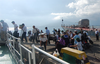 QDND - Ngày 19-4, tại cầu cảng vùng D hải quân, tàu HQ 936 đã rời bến chở đoàn công tác do đồng chí Võ Lâm Phi, Chủ tịch UBND tỉnh Khánh Hòa, làm trưởng đoàn ra thăm cán bộ, chiến sĩ và nhân dân đang công tác, sinh sống tại quần đảo Trường Sa và DK1...