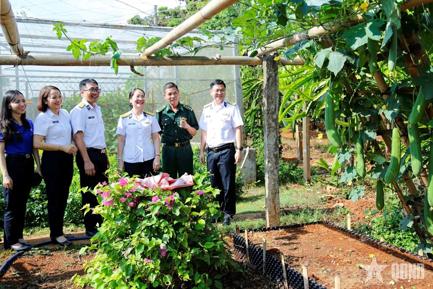 | Đoàn công tác tham quan khu tăng gia của Đồn Biên phòng Đăk Ơ. |