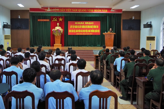 Sáng 7-5, Cục Nhà trường - Bộ Tổng tham mưu phối hợp với Trường Sĩ quan Thông tin tổ chức khai mạc lớp tập huấn bồi dưỡng và cấp chứng chỉ công nghệ thông tin (CNTT) cho cán bộ, giáo viên các học viện, nhà trường quân đội năm 2019.