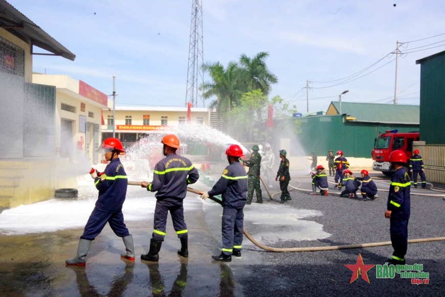 | Nội dung thi xử lý tình huống cháy nổ kho xăng dầu. |